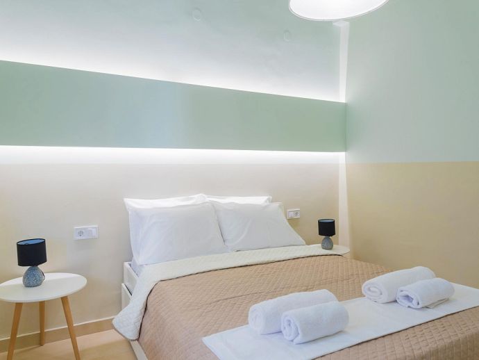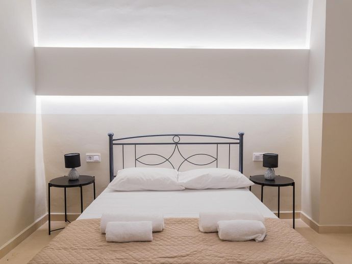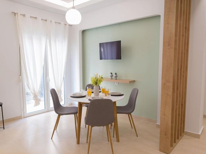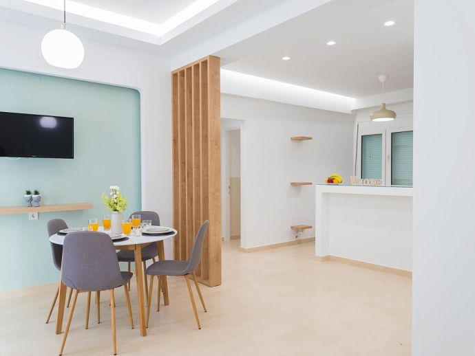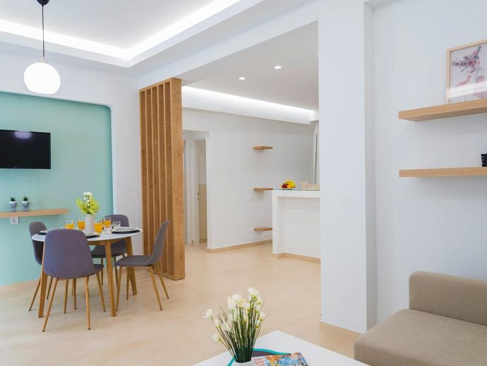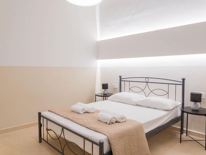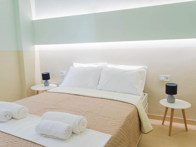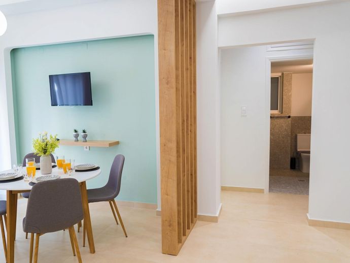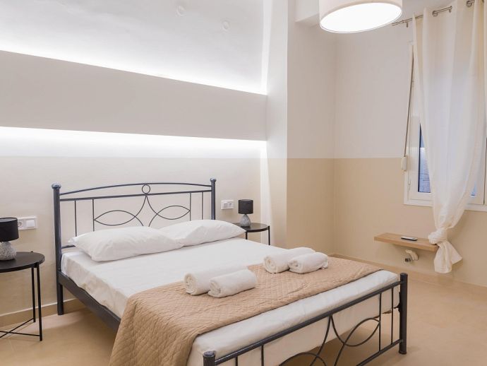 Elara Apartment is a recently renovated first-floor property located a few meters from Venetian Walls on the west side of the centre of Heraklion. This stylish 2 bedroom apartment sleeps up to 4 guests in fully air conditioned interiors and also has a balcony overlooking the local market area so it is close to restaurants, shopping and all of the cultural delights. Inside, comprises of 2 double bedrooms, 1 bathroom with shower and an open plan living/dining area and kitchen. For your comfort, bed linen and towels are provided. There is free Wi-Fi, a flat-screen TV and the kitchen is fully equipped with all appliances. Whether you are looking for a short city break or a longer holiday, you will be surprised by the quality and comfort of this apartment!