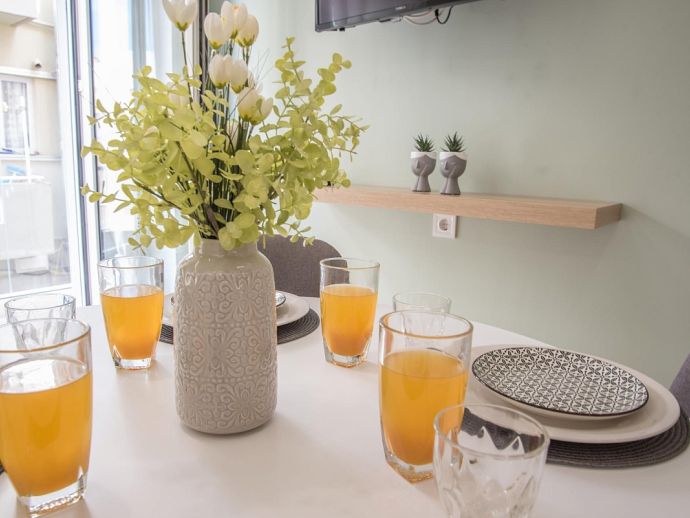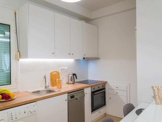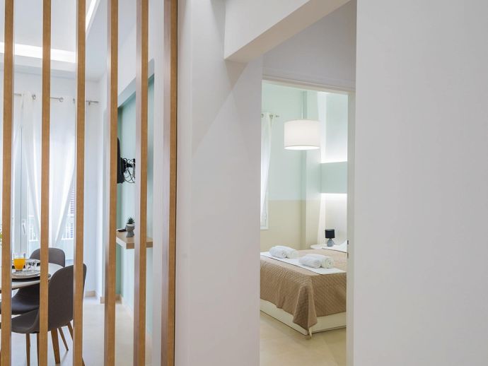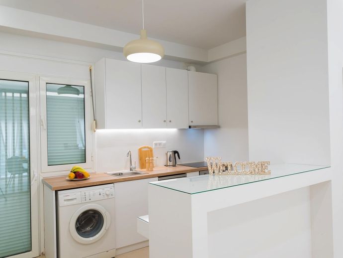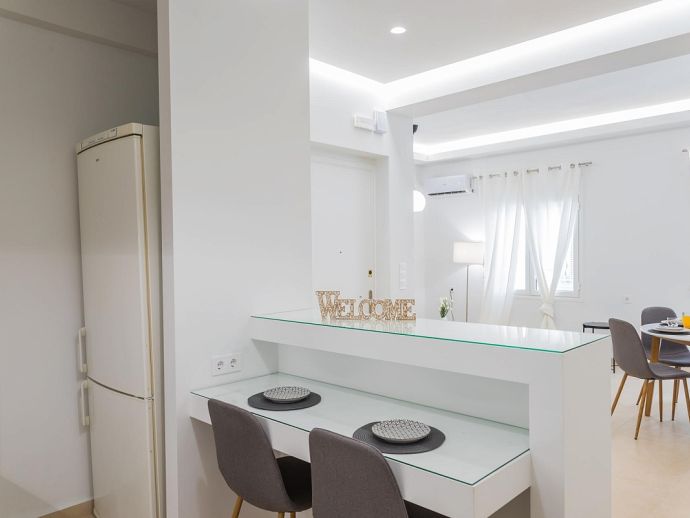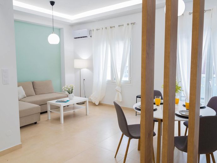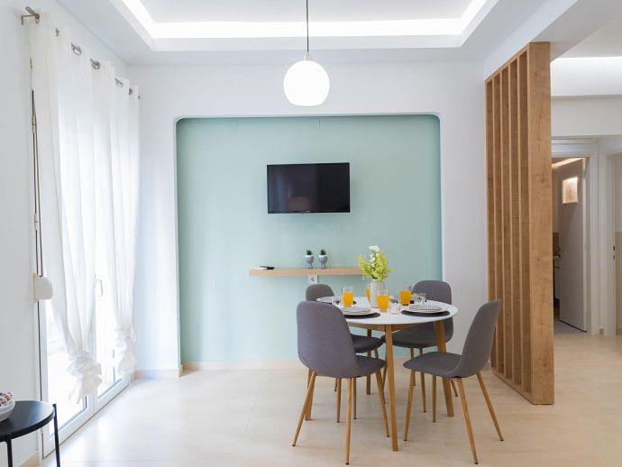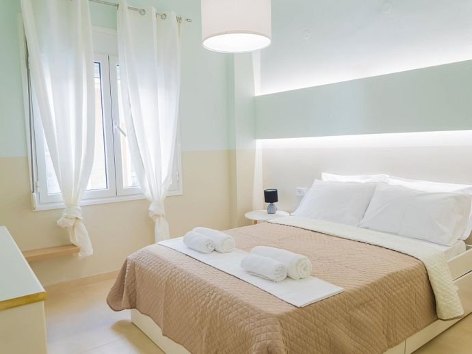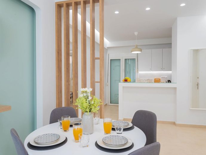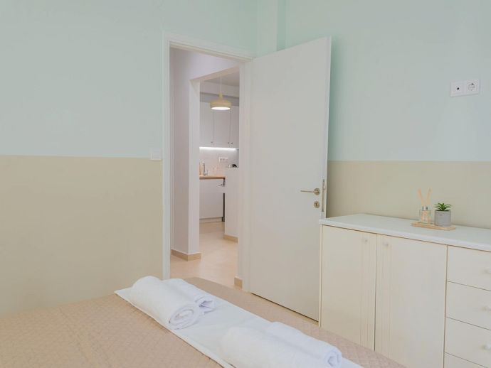 Elara Apartment is a recently renovated first-floor property located a few meters from Venetian Walls on the west side of the centre of Heraklion. This stylish 2 bedroom apartment sleeps up to 4 guests in fully air conditioned interiors and also has a balcony overlooking the local market area so it is close to restaurants, shopping and all of the cultural delights. Inside, comprises of 2 double bedrooms, 1 bathroom with shower and an open plan living/dining area and kitchen. For your comfort, bed linen and towels are provided. There is free Wi-Fi, a flat-screen TV and the kitchen is fully equipped with all appliances. Whether you are looking for a short city break or a longer holiday, you will be surprised by the quality and comfort of this apartment!