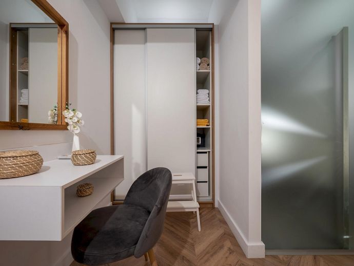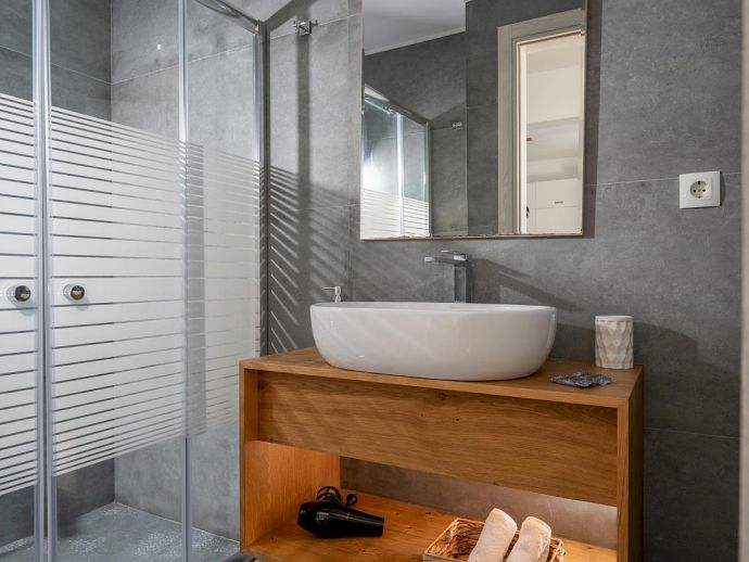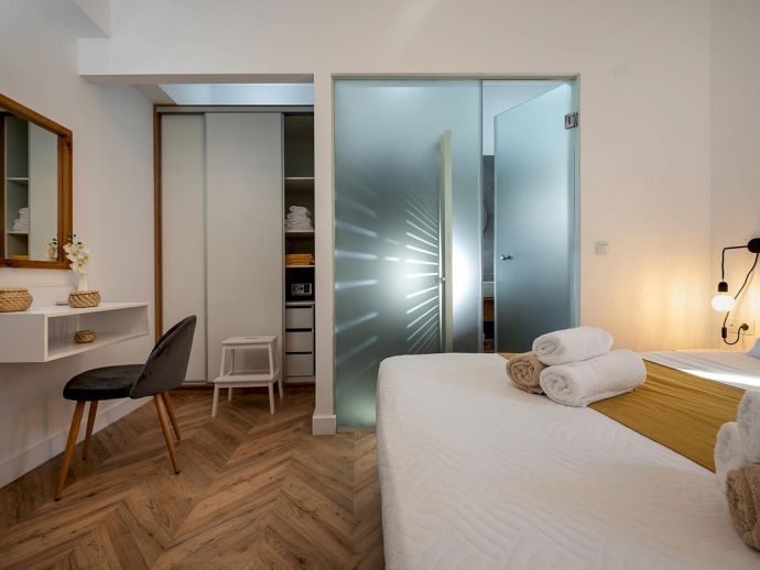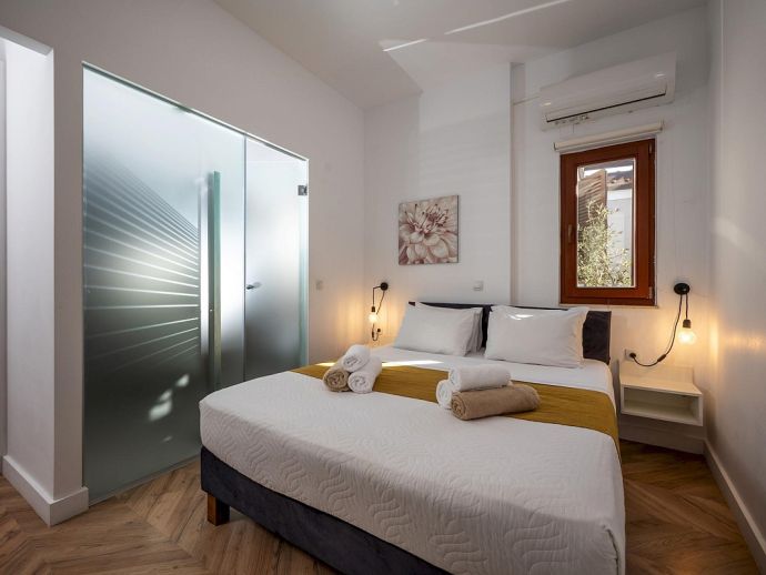 Bedroom: 1 x double bed, A/C, en-suite bathroom (shower, w/c)