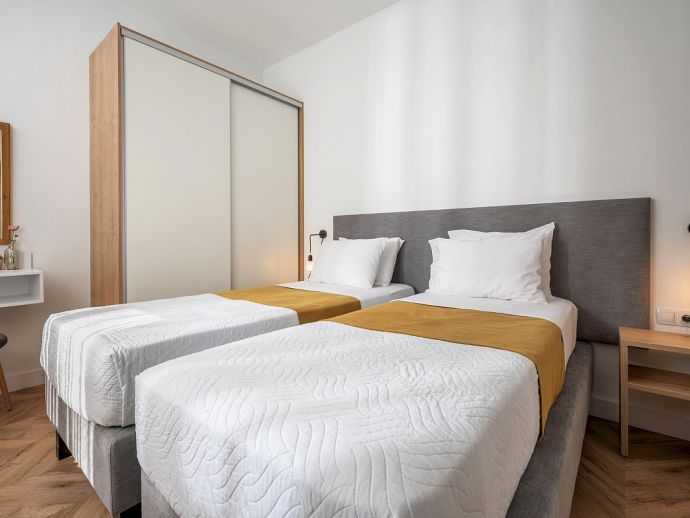Bedroom: 2 single beds, A/C, en-suite bathroom (shower. w/c)