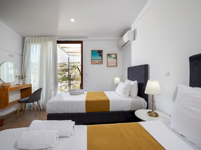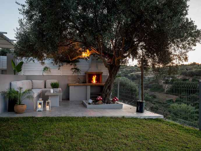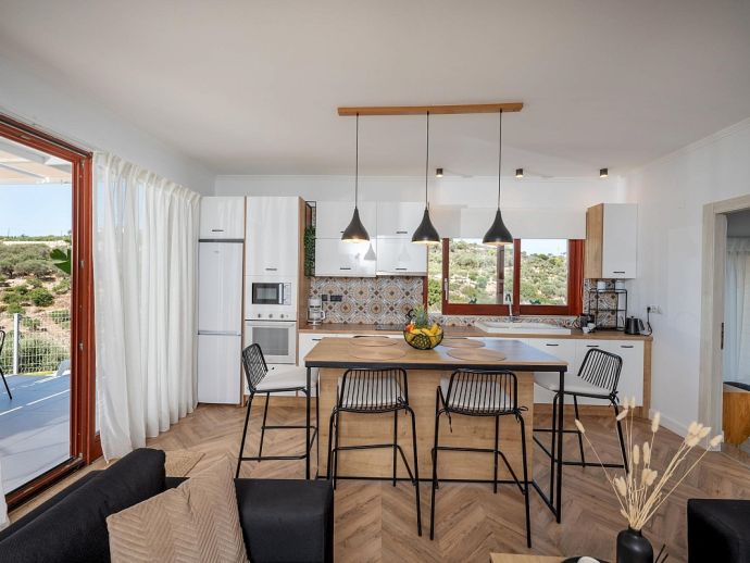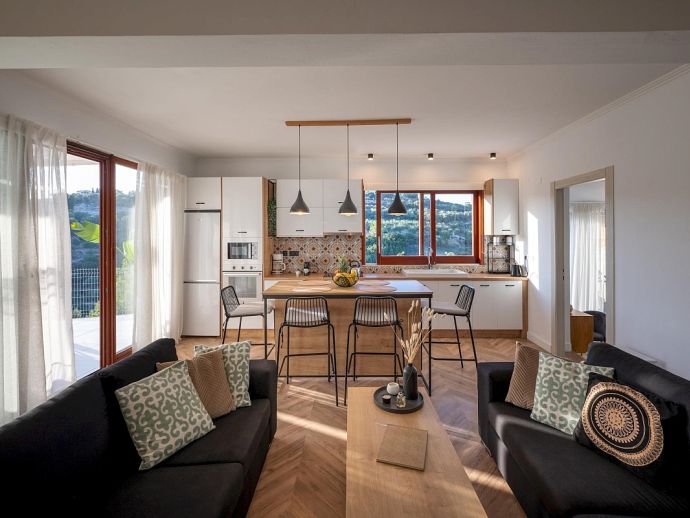 Nestled on a hillside in Kastellakia with views across the canyon and to the sea, a place to totally relax and enjoy the stunning views of the area and nature. Kastellakia is located just a short distance from the historic town of Retymno (2.5 km) where you will find all amenities such as supermarkets, pharmacies, banks and ATMs, restaurants, cafes, bars and a beach.