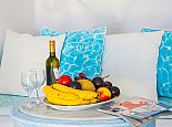 A luxury apartment suitable for 6 guests, located next to the swimming pool and built over 2 floors. On the ground floor, there is a small kitchenette, a double bedroom with en-suite bathroom, a second double bedroom and a further bathroom. The third bedroom with en-suite bathroom is on the upper level and has two picture windows providing beautiful sea views. The apartment is tastefully furnished with individually controlled air conditioning throughout, the bedrooms have flat-screen TV's and free Wi-Fi is available. For your comfort, bed linen, towels, pool towels and bath toiletries are all provided.