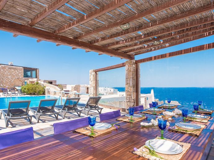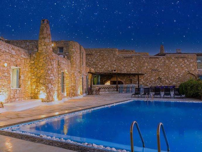 Bedrooms: 1 Sleeps: 2 + 2The villa has a great location, situated in the area of Kanalia with amazing sea and sunset views. It is 6 km from Mykonos Town, where you will find shops, museums, restaurants, tavernas, bars, clubs, health and beauty spas, gyms as well as a variety of sports facilities, including tennis and squash courts, water skiing , snorkeling, wind-surfing, kite-surfing, sailing and paragliding. The beach of Ornos is within close proximity with soft sand and crystalline blue waters.
