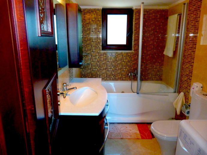 Bathroom: Whirlpool bath, toilet, wash basin, washing machine.