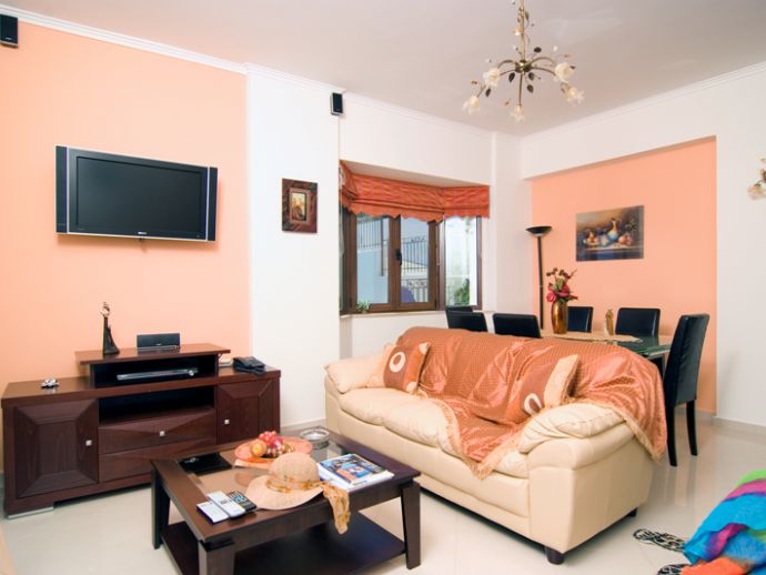 Bedroom: double bed, plasma SAT TV, large wardrobe, air conditioning, large terrace with table and chairs, en-suite bathroom with shower cabin, wash basin, toilet.