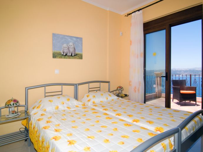 Bedroom with double bed, plasma SAT TV, large wardrobe, terrace, air conditioning.