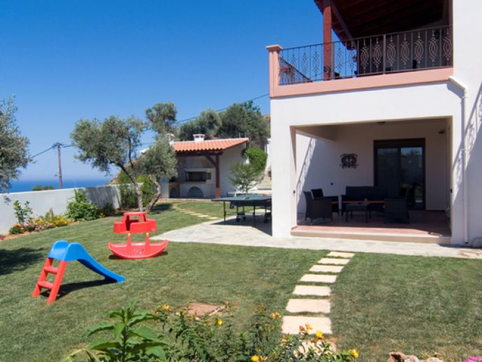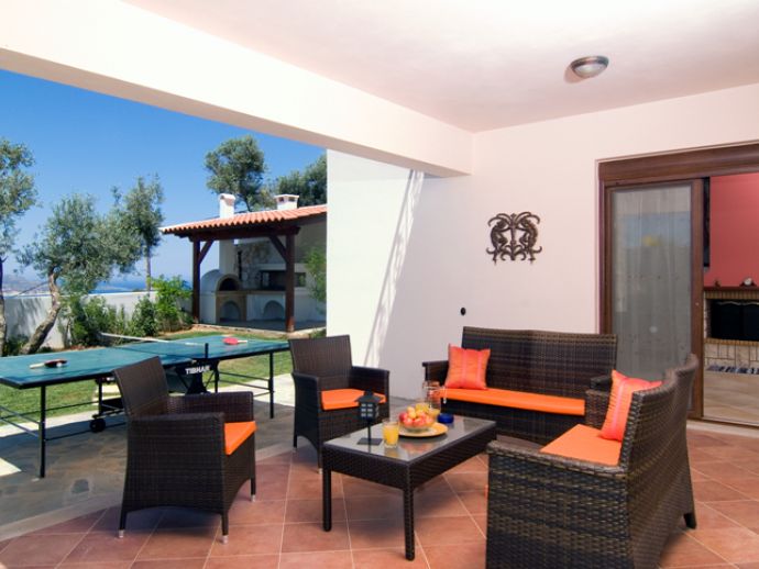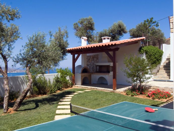 Built to very high specifications, Villa Amalia is modern and stylish, with an excellent yard which includes a beautiful salt-water pool with separate children section, a built-in barbeque with shaded dining area and wonderful gardens. The villa is surrounded by olive trees and offers spectacular views of Souda Bay and Akrotiri peninsula. Its unique location, offers breath taking scenery throughout the day, every day.