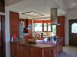 Fully equipped kitchen with breakfast bar and dining area.