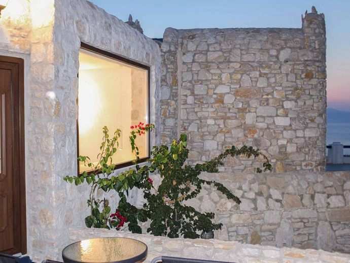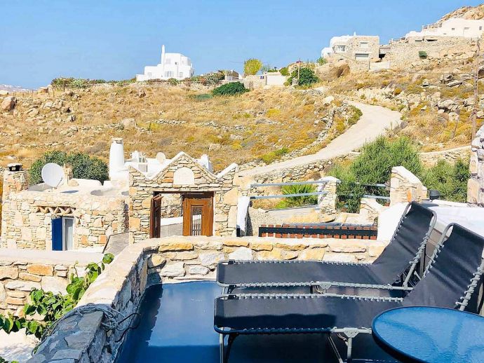 Private terrace with a Jacuzzi and sunbeds to enjoy the amazing Aegean sunset.