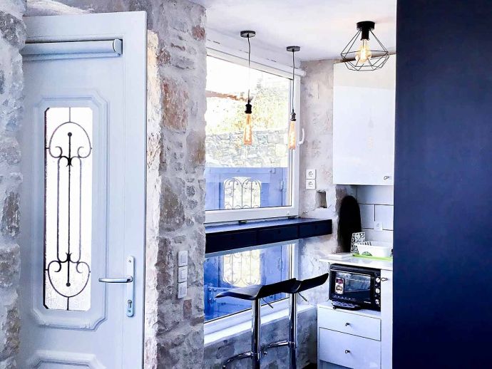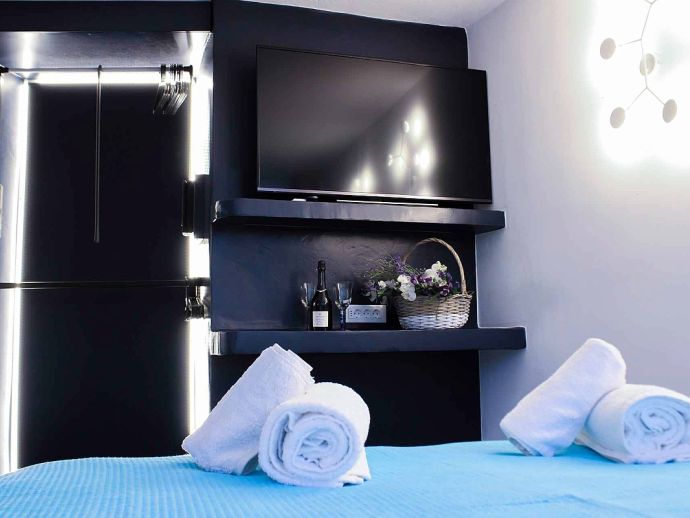 The Theodoros Suite is located in the area of Kanalia, 15 minutes drive from Mykonos Town and less than 10 minutes drive to Ornos beach with it's fine sand and azure waters. It offers an idyllic setting. a private terrace with a Jacuzzi/Hot tub and sunbeds to enjoy the amazing Aegean sunsets. This cosy suite is tastefully furnished in a traditional style and has air conditioning and free Wi-Fi. It comprises; 1 bedroom, a flat-screen TV, an equipped kitchenette with a toaster and kitchenware, a washing machine and 1 bathroom. For your comfort, bed linen, towels, pool towels and bath toiletries are all provided.