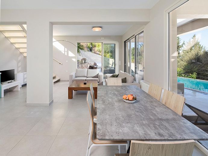 We feel the word ‘magnificent’ barely does justice to the sweeping seascape on offer from the infinity pool, adjacent terraces and panoramic windows in both living areas, let alone the first floor balconies where the sea, less than 20m away from the foot of the property’s sloping driveway, inevitably becomes a seamless part of your holiday.