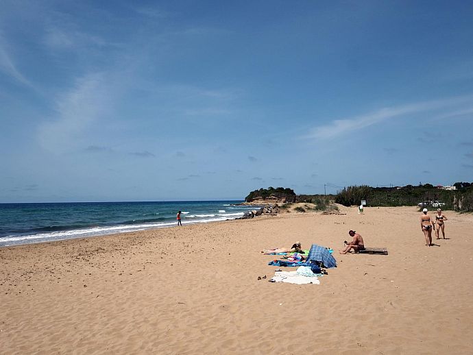 From Messonghi, the road runs along the south east coast to the villages of Boukari and Mpoukaris and on to Petriti. This corner of Corfu is an idyllic unspoilt area where the villages are small, the beaches uncrowded and the olive clad countryside is the perfect place for gentle walks. With its small fishing harbour, the sleepy hamlet of Boukari has changed little over the years, and has a renowned taverna. The main beach is small and quiet, perfect for anyone looking for a relaxing day. A mix of pebble and shingle surrounded by olive groves, providing shade, sunbeds are available to hire and the beach is considered safe for children. There is also a little harbour for fishing boats.