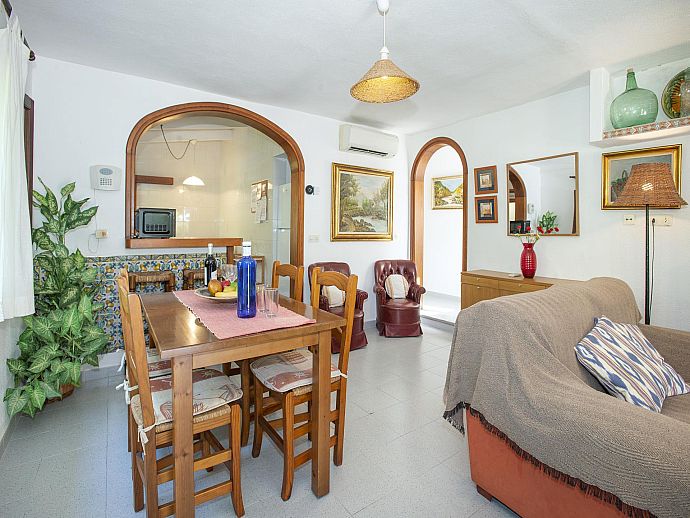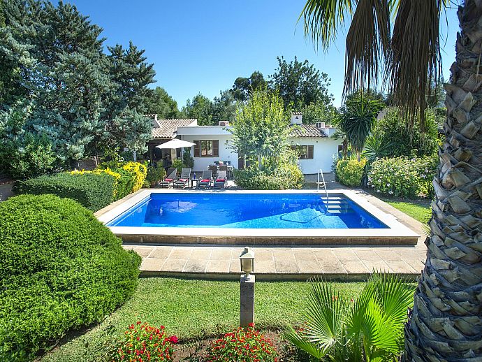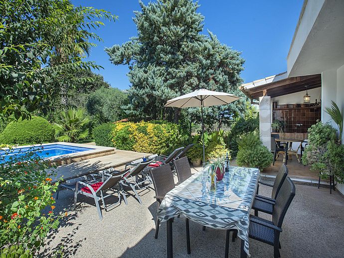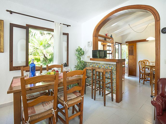 Can Piña greets its guests with a delightful garden brimming with a concoction of colourful plants in terracotta pots, lush Mediterranean shrubbery and swaying palm trees. A small lawn sits to one side of the pool and with poolside barbecue and shady alfresco dining area positioned perfectly in order to relish the scene as it unfolds, lazy afternoons will conjure up many fond memories to take back home.