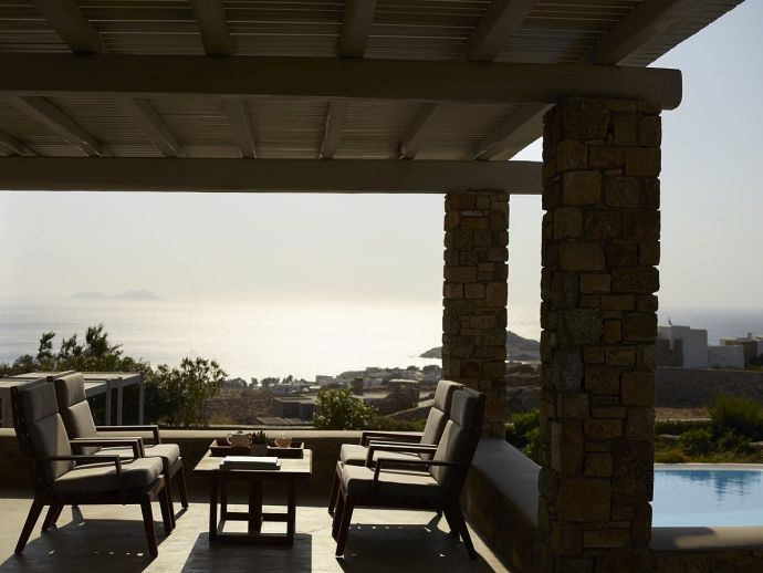 Blue Wave Villa provides breath taking sea views and is conveniently positioned 20 minutes drive from Mykonos Town and just a few minutes from the picturesque village of Ano Mera with its unique monastery. In Ano Mera, you can find taverns, patisseries, as well as a pharmacy, and a supermarket for your supplies. The villa is also a short drive to the beautiful beaches of Kalo Livadi, Agia Anna, Lia, Elia, Kalafatis, Ftelia, Agios Sostis and Panormos which are renowned for their wide range of water sports activities and excellent dining options.