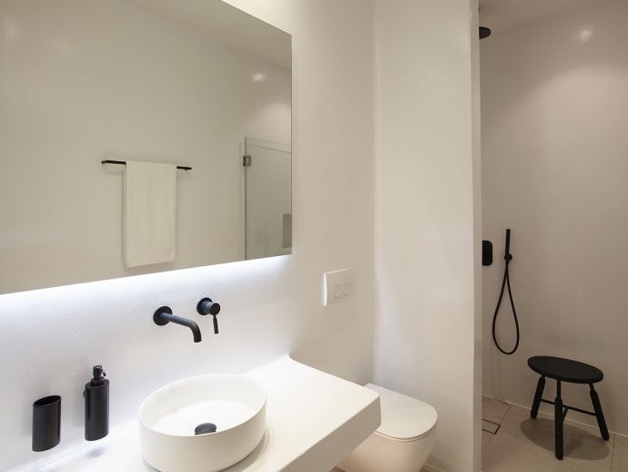 9 x Bedrooms: Equipped with 1 double bed each, 50’ smart TV, ceiling fan, A/C, Wi-Fi, spacious closets, access to the outdoors through balcony doors (two have an individual entrance as well), en-suite bathrooms (shower, w/c)