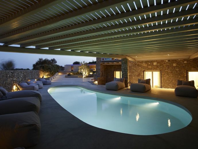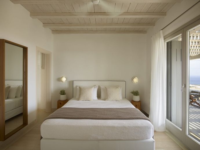 • 3 x Master Guest Houses - with en-suite bathrooms, access through balcony to the outdoors with amazing sea views overlooking Kalo Livadi and Kalafatis beach. One of the guest house has access to a private infinity swimming pool (25 m²) specifically designed for relaxation in absolute privacy •