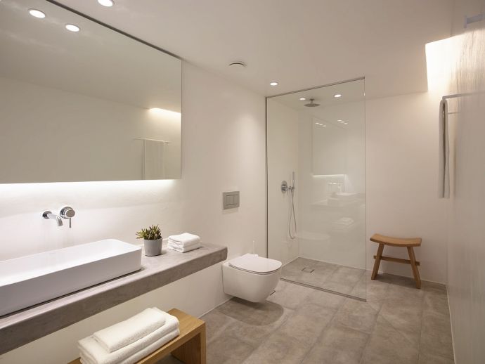 2 x Bedrooms - Equipped with 1 king size bed each, 50’ smart TV, Wi-Fi, spacious wardrobes, ceiling fan, A/C, desk, safe, amazing sea/pool view, easy outdoor access through balcony doors (one has an individual entrance) to terrace, en-suite bathrooms (shower, w/c)