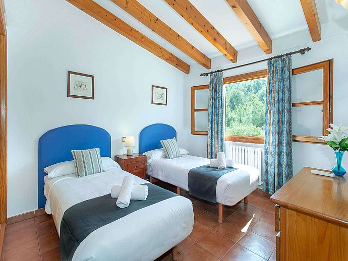 First Floor: Double bedroom (A/C). Twin bedroom (A/C). Twin bedroom (A/C) with en suite shower. Separate bathroom.
