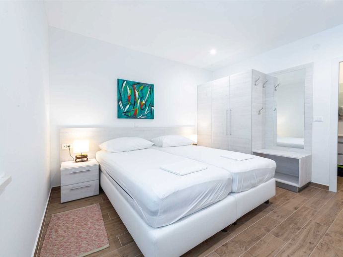 Bedroom: 2 x single beds (90x200 each), A/C, SAT TV, en-suite bathroom (shower, w/c)