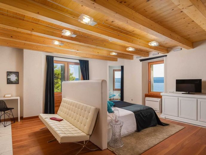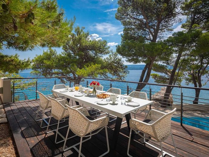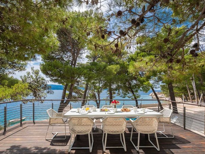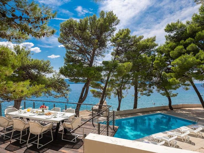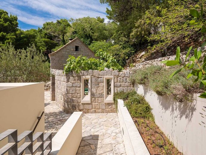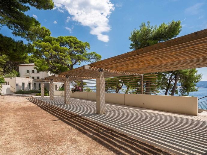 Plot Size: 600 m² - Beachfront position with panoramic views of the sea and Brac Island. Garden of Mediterranean plants, flowers and pine trees.