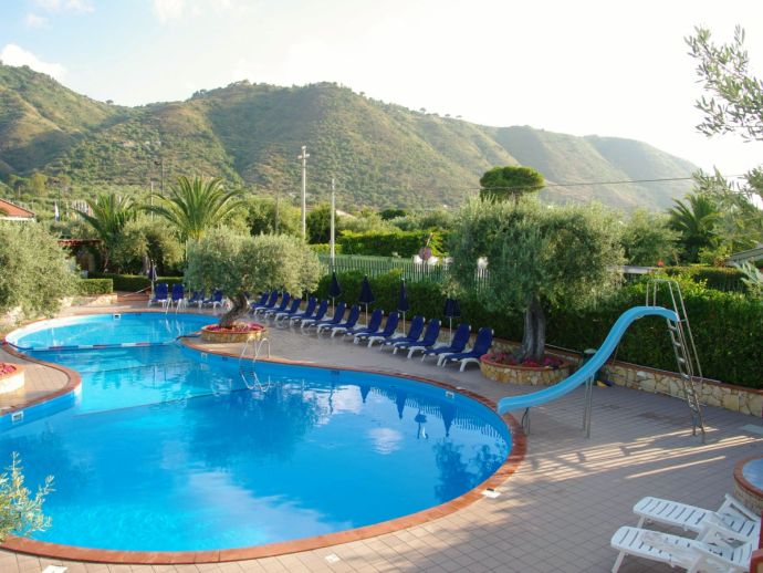 Fontana Barone Residence is a lovely holiday residence with a group of semi-detached houses in the midst of Mediterranean vegetation. Small, well-kept gardens surround the individual units. There is a communal pool with a slide, comfortable sun loungers, a bar, a billiards and ping pong table and it is surrounded by tropical vegetation and palm trees. WiFi is free in public areas and there is also a communal laundry area with a washing machine, clothes dryer and iron/board.