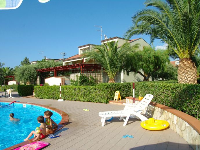 Fontana Barone Residence is a lovely holiday residence with a group of semi-detached houses in the midst of Mediterranean vegetation. Small, well-kept gardens surround the individual units. There is a communal pool with a slide, comfortable sun loungers, a bar, a billiards and ping pong table and it is surrounded by tropical vegetation and palm trees. WiFi is free in public areas and there is also a communal laundry area with a washing machine, clothes dryer and iron/board.