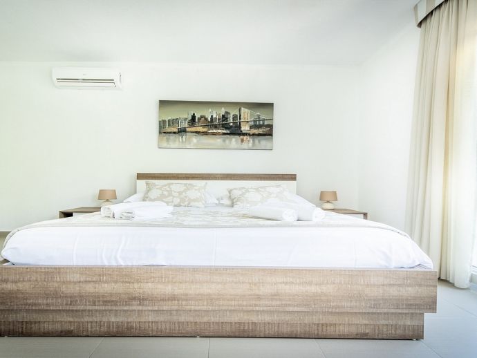 Bedroom 1: Double bed, A/C, TV, exit to terrace and en-suite bathroom with shower.
