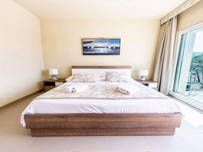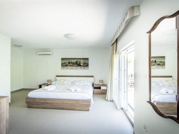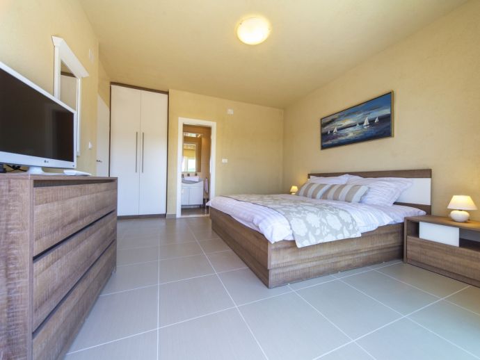 Bedroom 5: Double bed, A/C, TV and en-suite bathroom with shower.