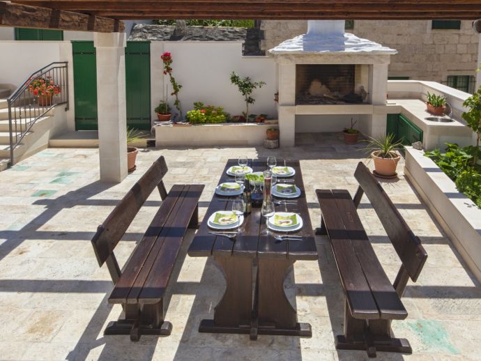 Villa Janus is situated in the centre of the village of Povlja on Brac and just 200 meters from the beach. The village itself is located in a deep natural harbour surrounded by many other deep natural harbours and bays. There are a couple of restaurants with superb local cuisine. The village is famous for its crystal clear sea and is perfect for a family vacation due to the calmness of both water and atmosphere of a real Mediterranean village.