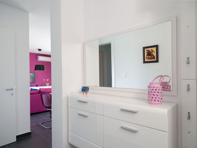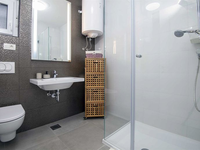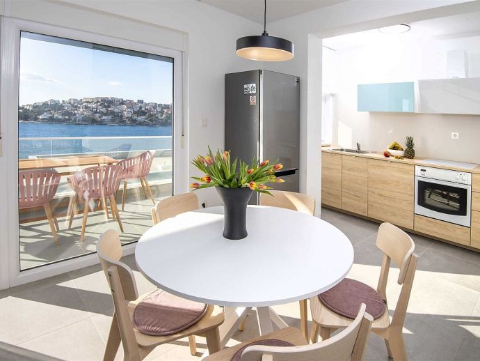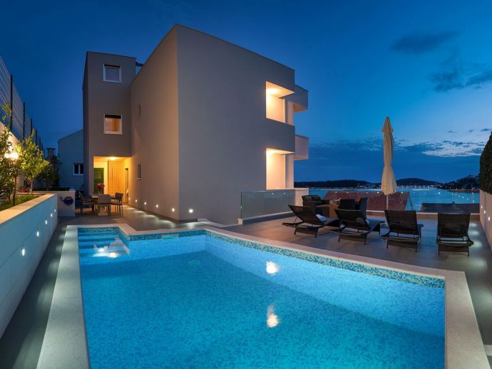 Villa Jasmin is located just 80 meters from the sea in Rogoznica, a warm and quiet town at the end of North Dalmatia. Its coastline extends for almost 50 km and it’s the perfect place to relax. The villa consists of two separate apartments which both have all modern amenities, air conditioning, heating, WiFi, fully equipped kitchens, living and dining areas and has a total of 5 bedrooms accommodating 10 people, should your party be larger an additional 2 beds are available (max 12). Outside is a large garden, private pool (7m x 3m), terrace, dining furniture and barbecue area, a private garage for 2 cars plus additional parking at the front. This villa offers amazing sea views from every area and is an ideal base for those wishing to further explore the beauty of the Dalmatia coast.
