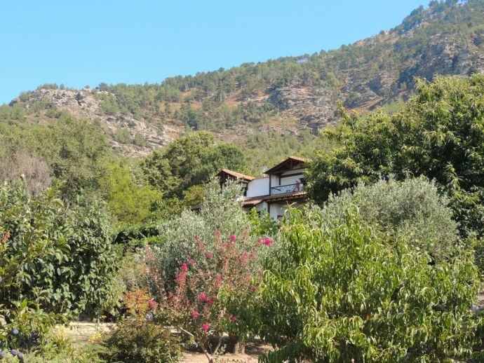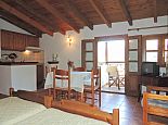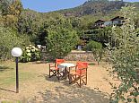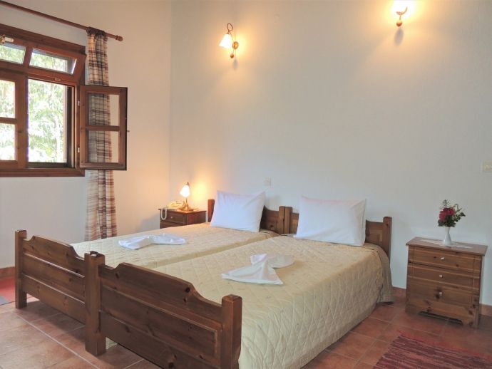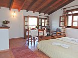 The main house is completely refurbished in to 3 separate apartments, all with balconies and stunning views over the immense green garden and the surrounding mountains. This studio-apartment features a living/dining room with TV, dining table with chairs, twin beds and french glass doors to the terrace and a fully equipped kitchenette. There is also another separate double bedroom, also with twin beds so the studio-apartment can sleep up to 4 persons.