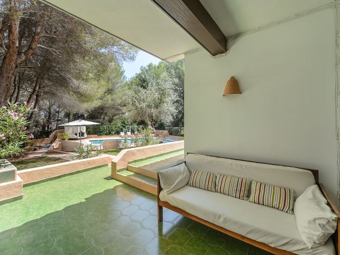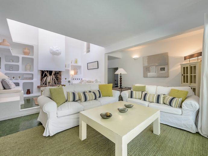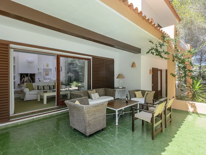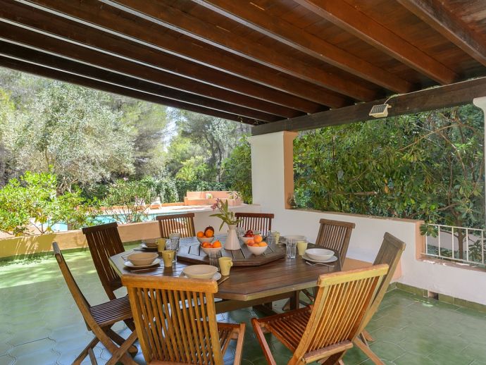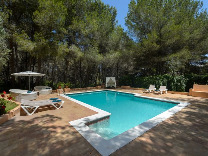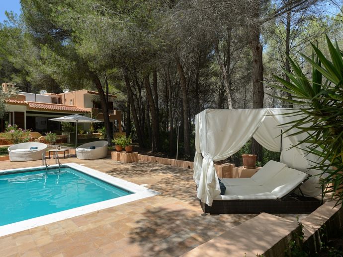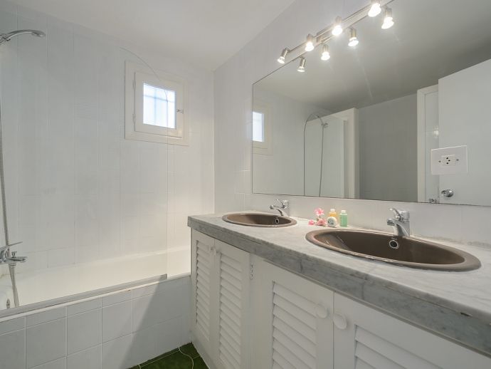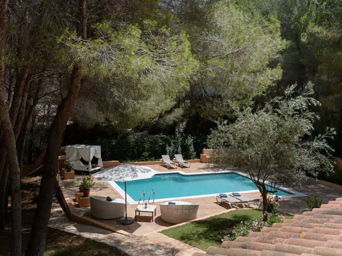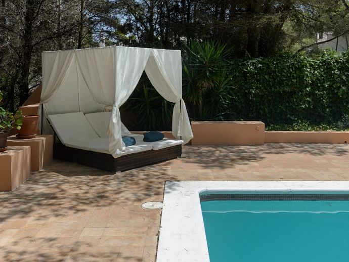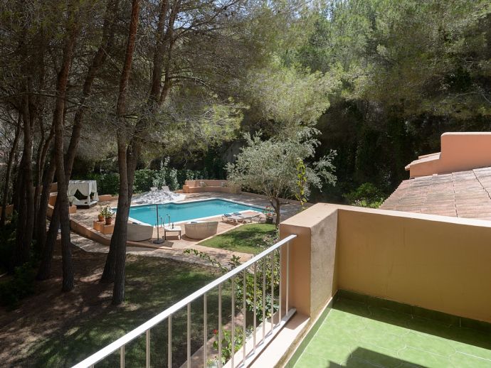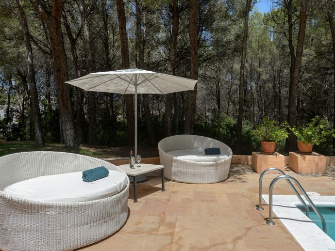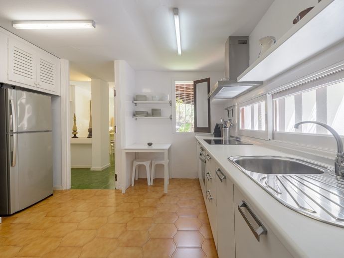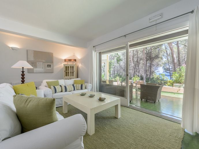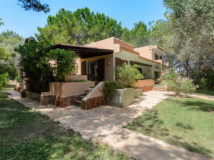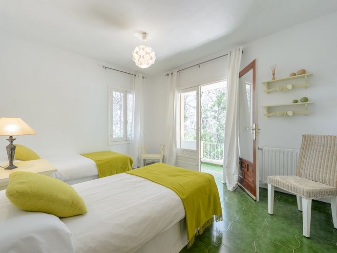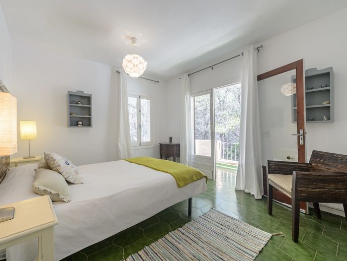 Located in the exclusive urbanisation of La Joya, next to the sandy beach of Cala Llenya (at only 100 m), with direct access to the sea, this house villa has a plot of 3.200m2 and is ideal for those looking for peace, quiet and privacy. The villa is distributed over 2 floors and sleeps 8 in 4 spacious air conditioned bedrooms with access to a private terrace and en-suite bathrooms, a fully equipped kitchen and a delightful open plan living space with large glass doors that lead out to a covered terrace, private pool and garden.