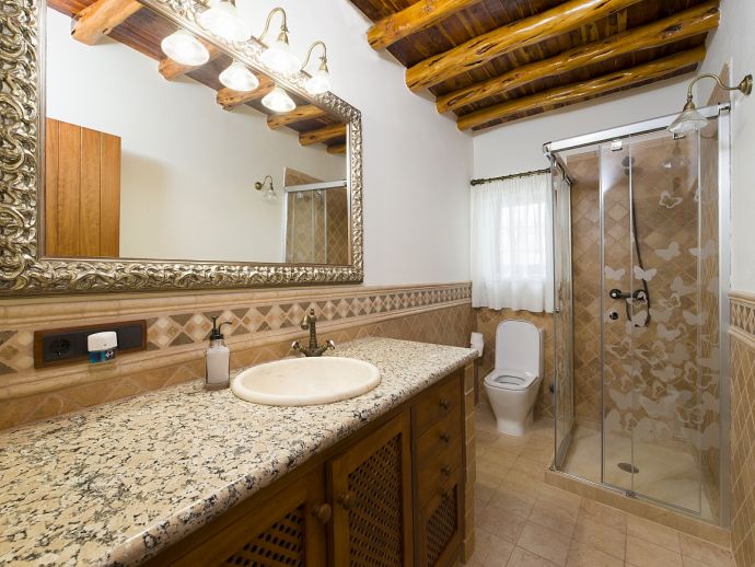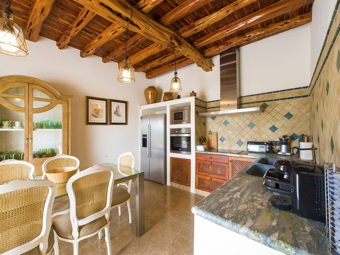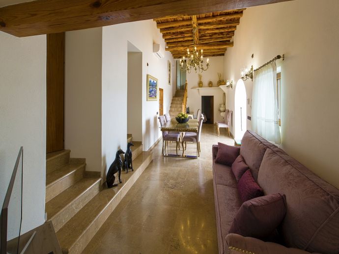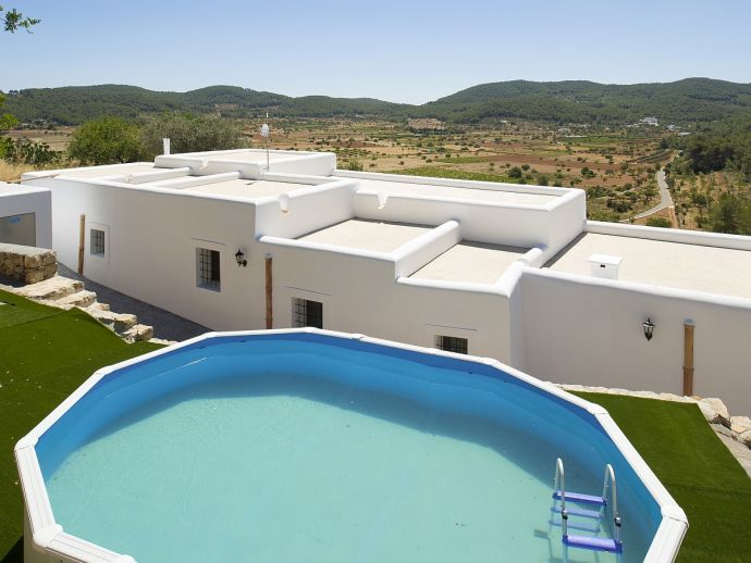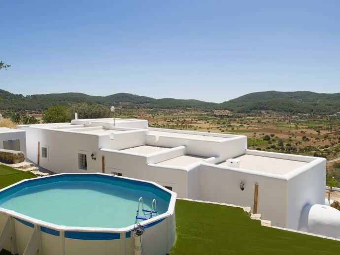 Beautiful Ibiza style villa with private pool, fully air conditioned, located on top of the hill of the San Mateo Valley, located facing south with sun the whole day. Recently and lovingly refurbished it features 4 double bedrooms and 3 bathrooms (2 en-suite), a fully equipped kitchen, dining and seating area with Satellite TV. Accessed from here is a very nice patio-terrace at the front of the villa with lovely views across the valley and countryside.