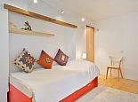 Main entrance, with connecting hall to the kitchen and the living room. It is a large and undivided space with a kitchen, a lounge, a dining room and a conservatory as a reading corner room space. This floor has two terraces: one facing south, directly connected to the kitchen and equipped with a wooden porch, the other facing north and connected directly to the living room with fantastic sea views. It also has a wooden porch. This second floor also features two bedrooms (one double and one with 2 single beds that have additional pull out single beds) with en- suite bathroom each and fully equipped. Both bedrooms and bathrooms have natural ventilation and sea views.