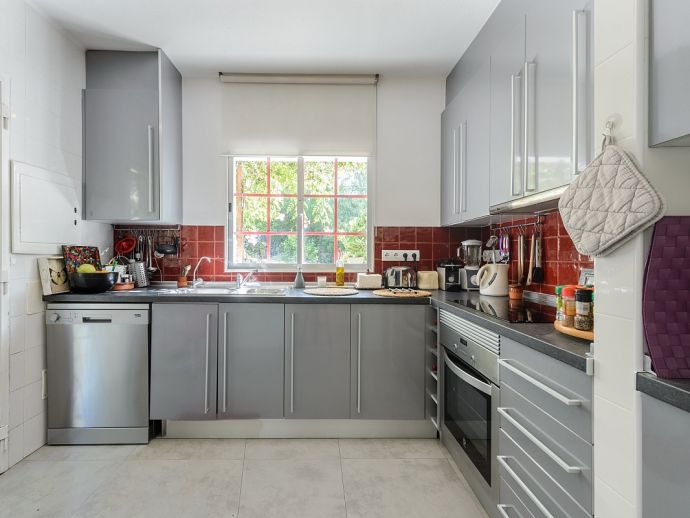 Fully equipped open plan kitchen.