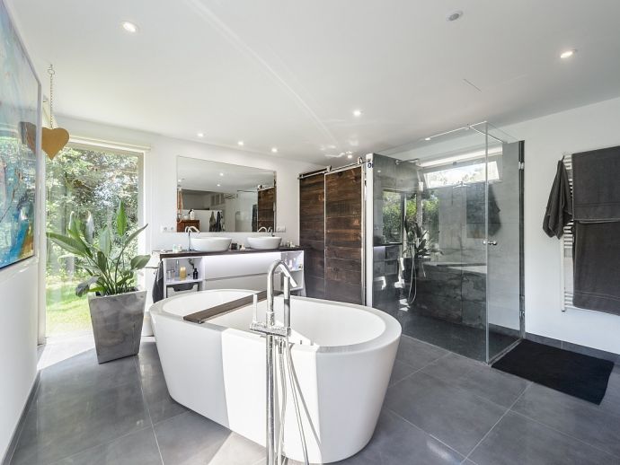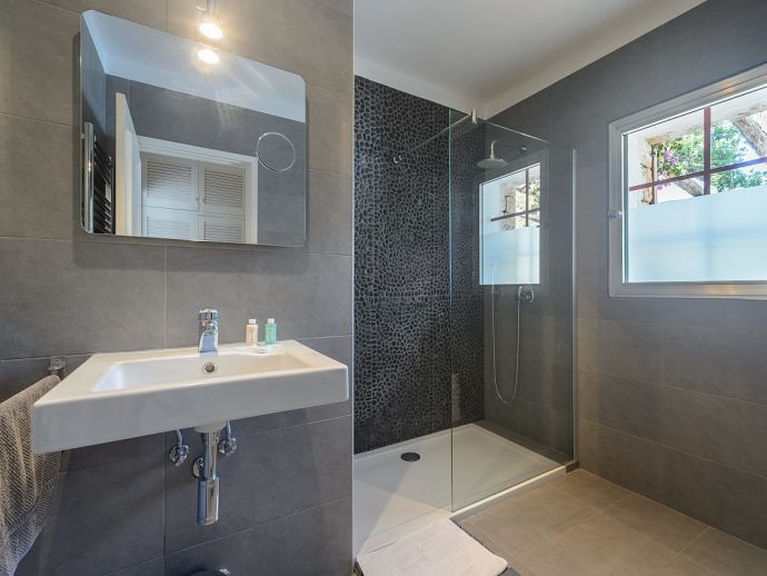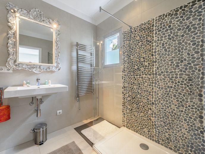 Villa Orchidea is located only 850 m from the beach of Cala Llonga in a quiet residential area. This beautiful one level villa of 177 m² has a modern and immaculate interior and is spacious and light with high specification finishes. The villa sleeps a maximum of 5 people in 3 bedrooms with air conditioning and satellite TV, there are 3 bathrooms (one with a free standing bath tub), a fully equipped kitchen and large living room. The exterior of the property has plantings of shrubs and pretty flowers, a courtyard area, a brick built barbecue and a cosy terrace for dining al fresco. The plot is a total of 1500 m² of lush gardens with chill out furniture, a private swimming pool, comfortable sun loungers and a Balinese bed to indulge in a little siesta.