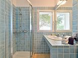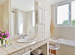 Bedroom (double bed), wardrobe, TV, bathroom with shower and a whirlpool bath