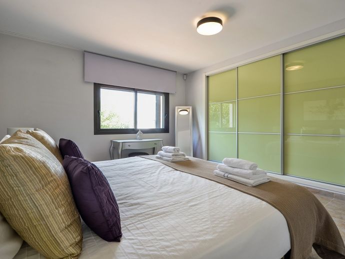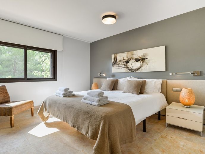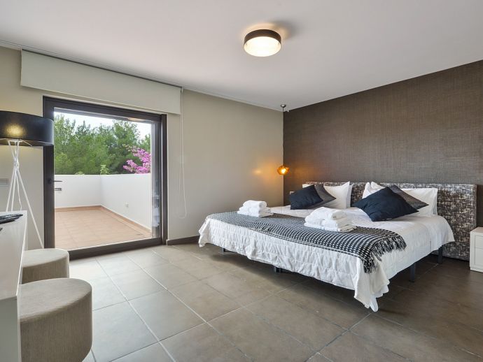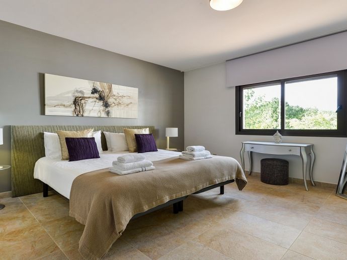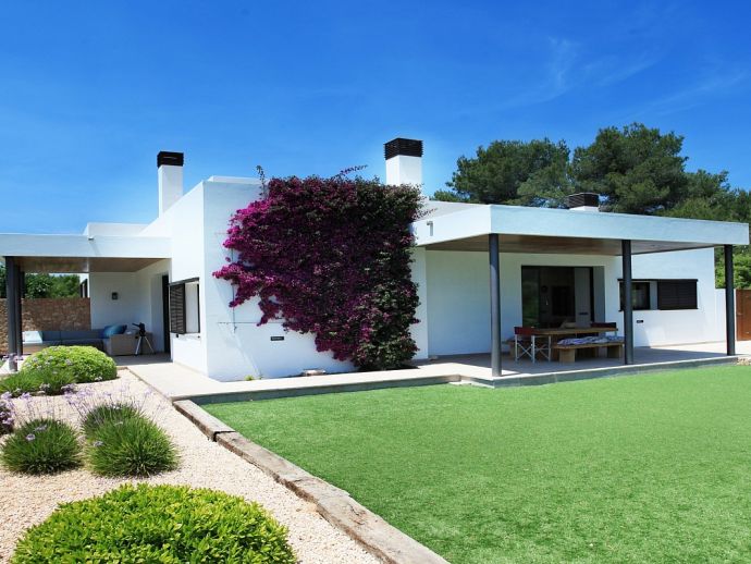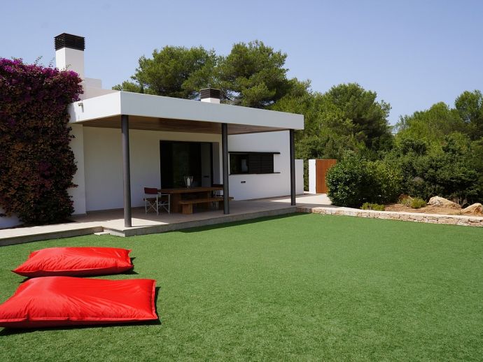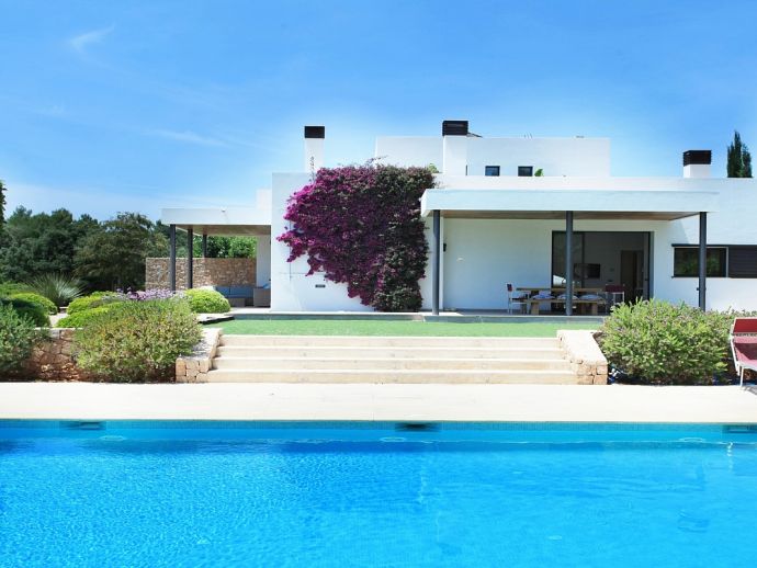 Nikita is a beautiful villa, a haven of peace and tranquillity located in a rural area with a private swimming pool, Jacuzzi, "Zen" patio, several areas of covered terrace for dining 'al-fresco' and all surrounded by beautifully landscaped gardens and nature. The property has been recently built and has been furnished to a very high standard, it is fully air conditioned and provides fantastic light, bright and spacious accommodation for 8 persons. There are 3 double bedrooms (1 x en-suite), a master bedroom (en-suite) with a private terrace, dressing room and office area, a fully equipped kitchen, dining area and 2 living areas. The villa is within easy reach of the picturesque village of Santa Gertrudis and the sandy beach of Santa Eulalia, it provides an ideal place to explore the beautiful island of Ibiza.
