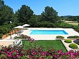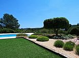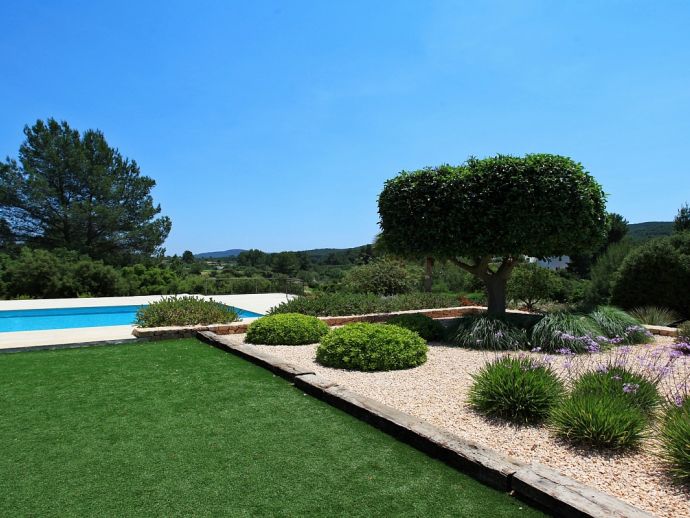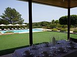 Large private swimming pool (15 x 8 meters) with Jacuzzi and sun beds, surrounded by a manicured garden and several areas of covered terrace for dining 'al-fresco';