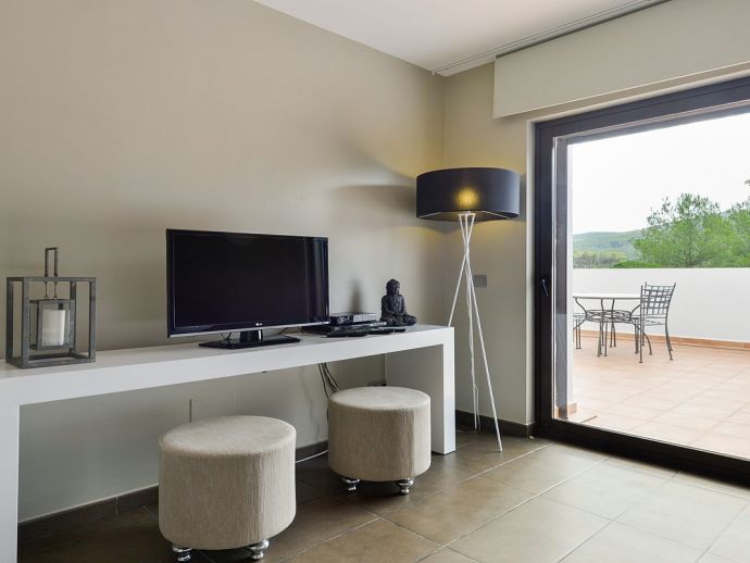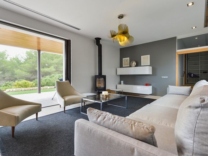 The house is located in an isolated rural area, 4 km from Santa Gertrudis and 10 km from Ibiza town. The nearest restaurants and shops can be found Es Caliu at 2 km and the sandy beach of Santa Eulalia at 7 km, making it ideal an location for those seeking the peace and tranquillity of a rural retreat but still within easy reach of amenities.