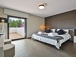 Master bedroom with dressing room, en-suite bathroom with shower access to a terrace with table and chairs. There is also a small office area.