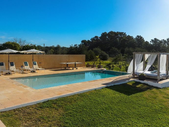 Oksana located between Santa Gertrudis and San Mateo, offering peace and quiet, while being close to major leisure sites (15 minutes drive from Ibiza Town) and Ibiza beaches like Cala Salada or Cala Gracio (10 minutes drive).
