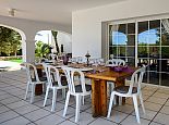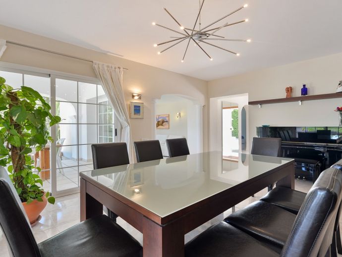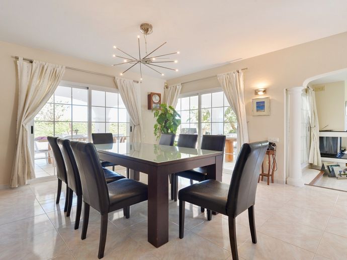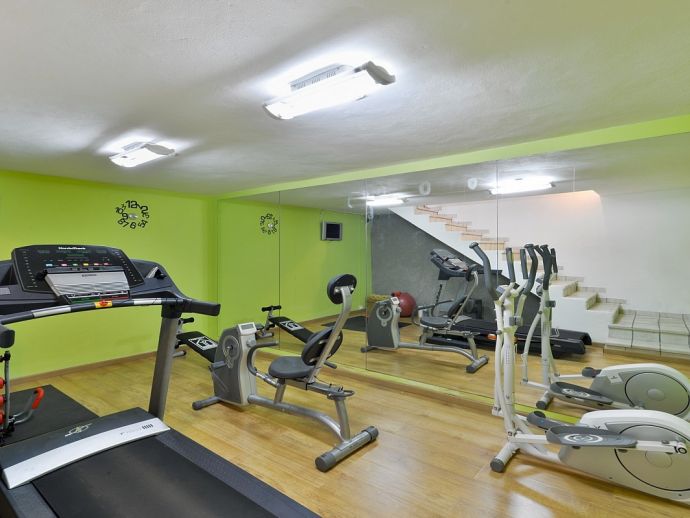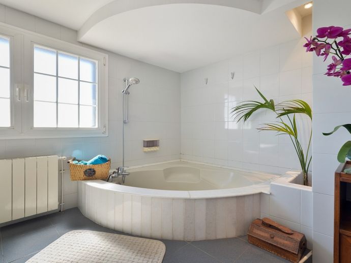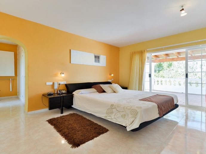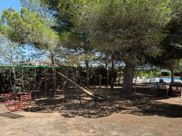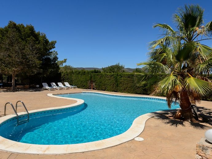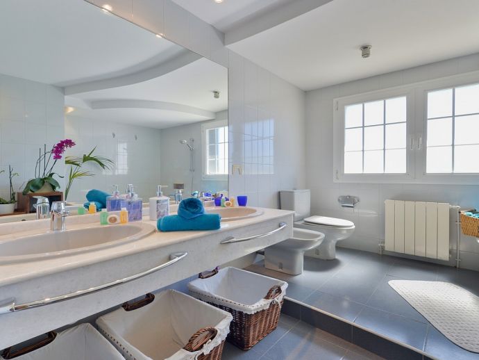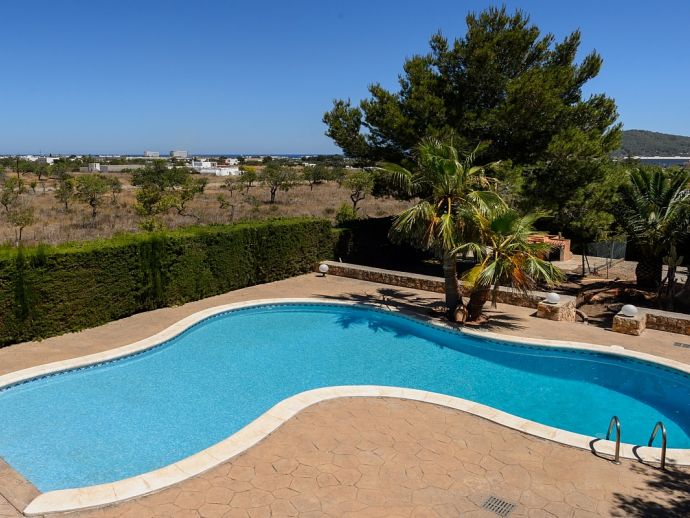 Villa Fleur is a large property with stunning views of Dalt Vila and the sea and is very well located at just a few minutes drive from the wonderful beaches of Las Salinas and Playa den Bossa and very close to Ibiza Town. The house sleeps 12 persons and has air conditioning, it is tastefully furnished and provides spacious and light accommodation throughout. There is a large living room with satellite TV, fireplace and dining area with glass doors to the garden, a modern and very well equipped kitchen, laundry room, 6 bedrooms (4 doubles and 2 twins), 4 full bathrooms (1 x en-suite with bathtub and 3 x showers) and even a gym in the basement. It sits on a fenced plot of 3,200 m² with green gardens, 200 m² of terraces, a private pool, a tennis court and a children's playground surrounded by trees making it an ideal place for families to enjoy memorable holidays.
