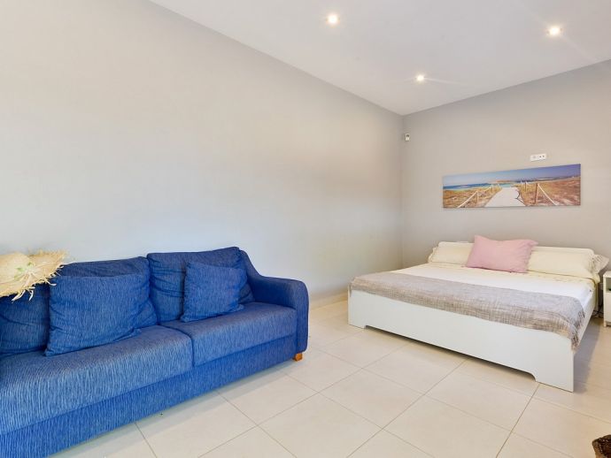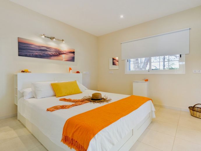 Bedroom: Double bed, AC, TV, exit to the garden