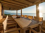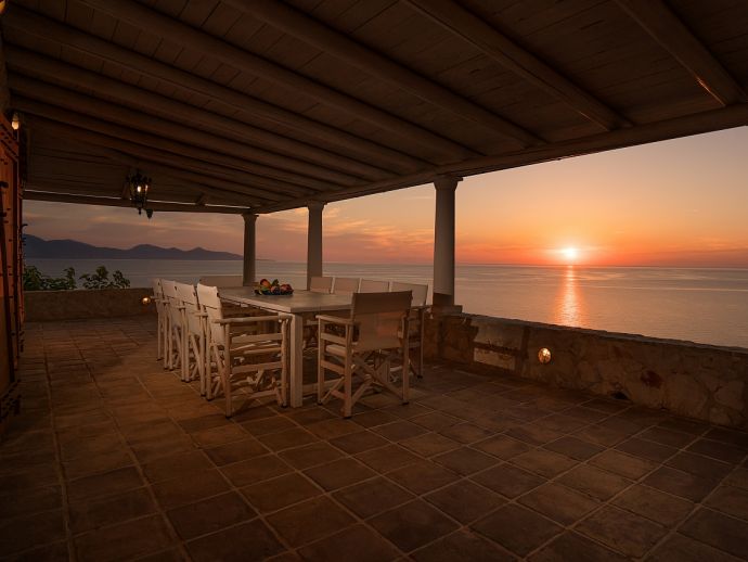 Spacious covered terrace 80 sqm with large dining table and breath-taking sea views.
