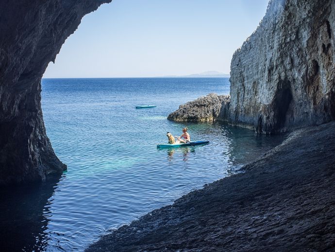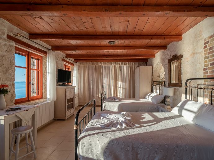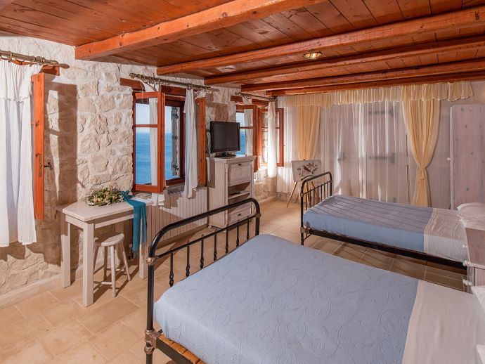 Direct access to the sea via a stone path which leads down to impressive Priest's Cave where kayaks are available for guests use.