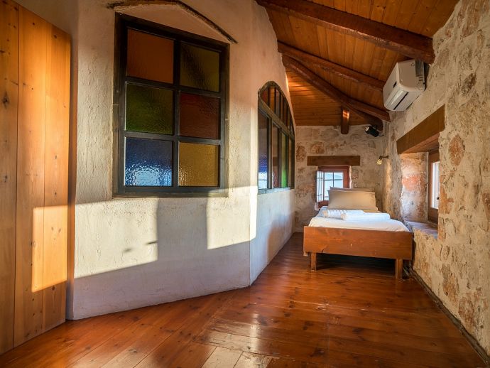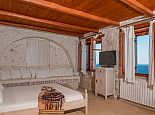 All bedrooms have air conditioning and sea views. The bedrooms on the ground floor in the main house have small kitchenettes, their own entrances and terraces.