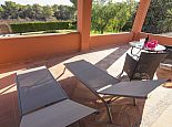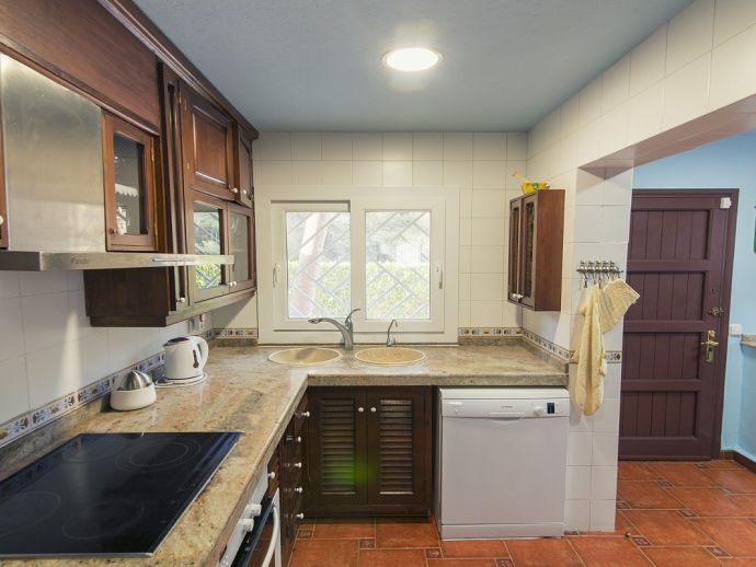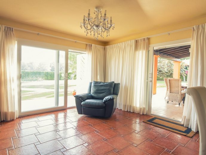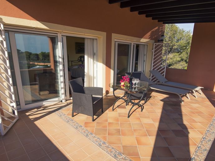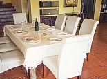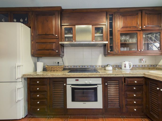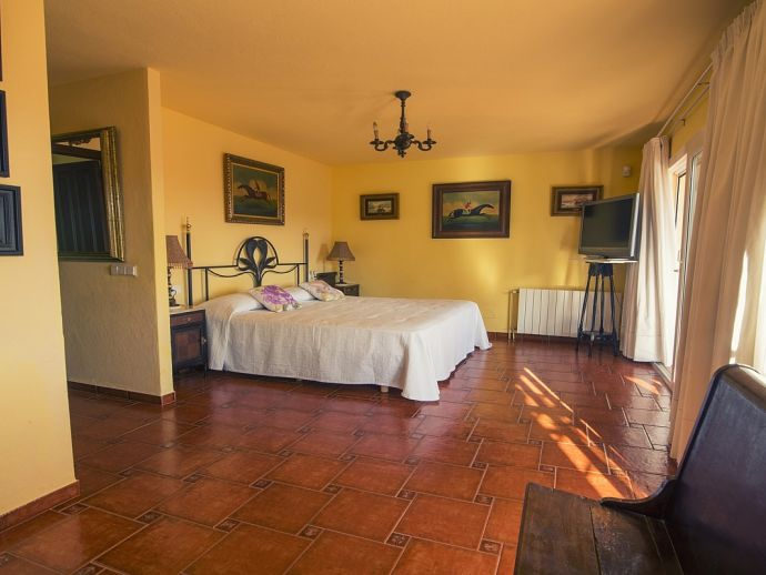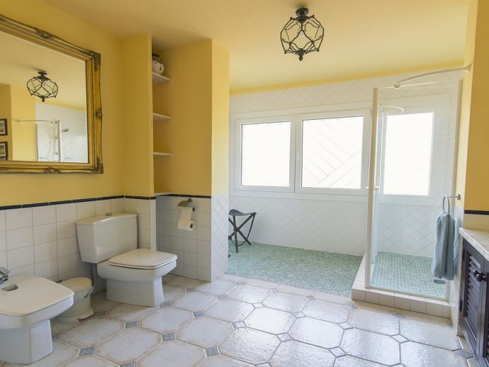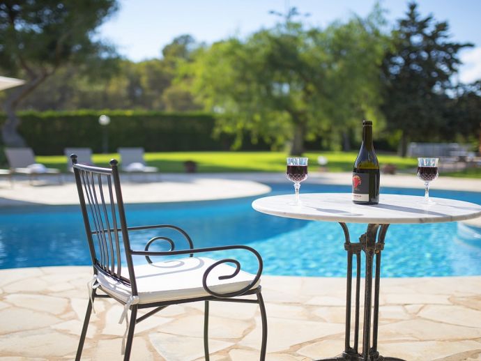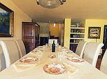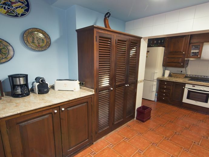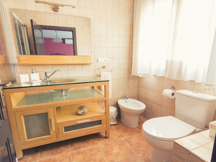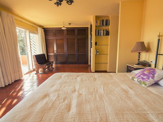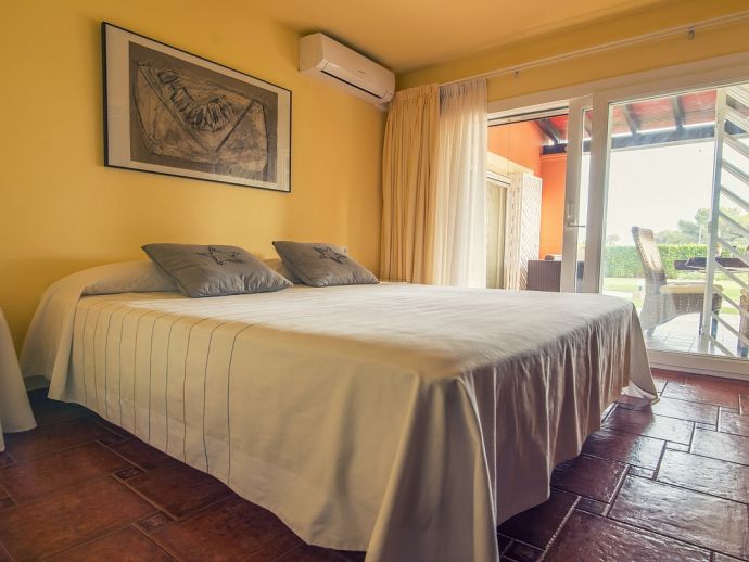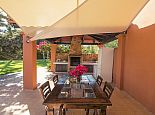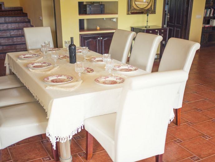 Villa Clarissa is located just 700 meters from the picturesque beach at Es Torrent, it is a large house with 5 bedrooms that comfortably sleeps 10 and sits on a generous garden plot of 3,000 m² with a private swimming pool, a gym and surrounded by hedges that provides total privacy. On the main floor of the house there are 4 bedrooms, one double bedroom with en suite shower, a second double bedroom, two twin bedrooms, a shared bathroom with shower and a guest toilet. There is a fully equipped kitchen, a living room with leather sofas, satellite TV, stereo, DVD and dining room which leads out to the barbecue area and covered porch with a wooden table for 10 people. On the upper floor there is a large master suite with a double bed and big bathroom, this room opens onto a private terrace with furniture and views to the garden and pool. Clarissa has air conditioning, WiFi (available in all bedrooms), 3 TV's and offers very spacious accommodation making it ideal for either large families or groups of friends.