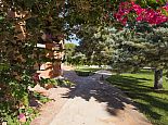 A fenced plot 3,000 m² of beautiful gardens with flower beds, palm trees and hedges providing total privacy.