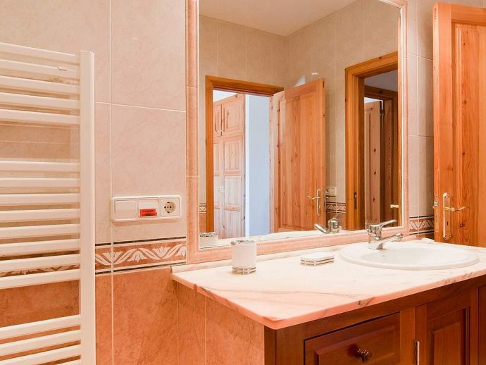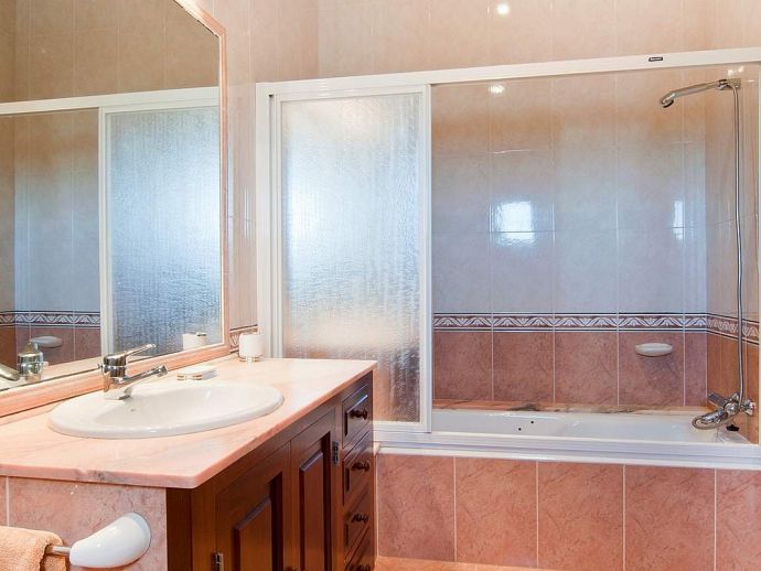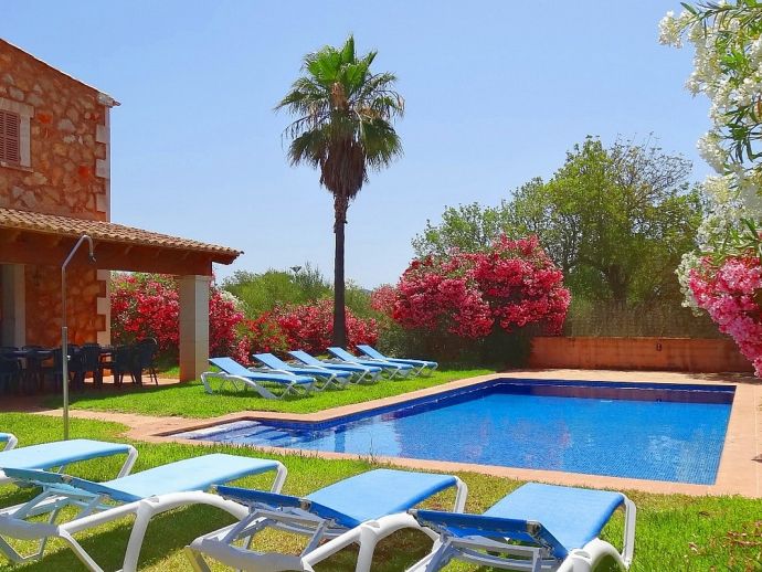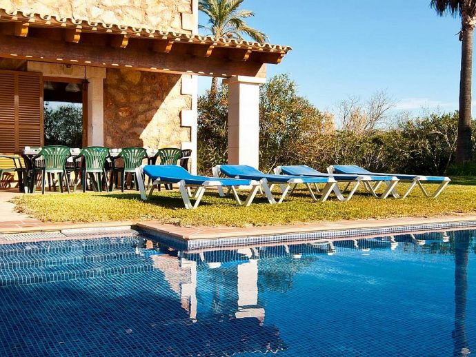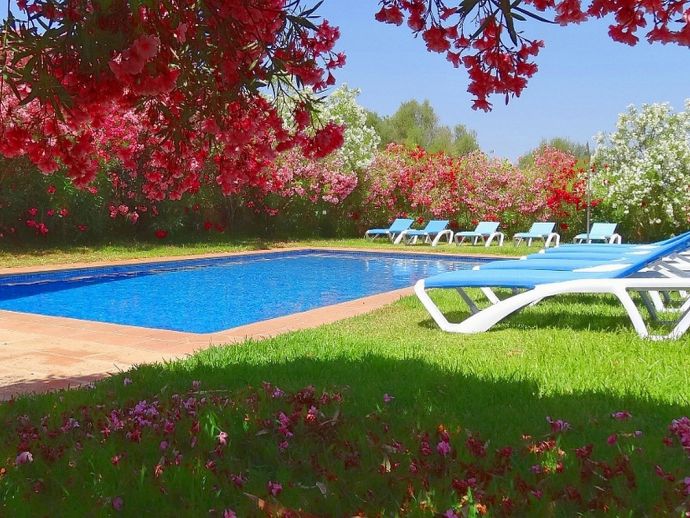 Finca Pepe is a comfortable, newly built and fully equipped country house with air conditioning in all rooms and a private swimming pool. Decorated in Mallorcan style the house has 300 m² of living space, distributed on 2 floors. On the ground floor there is an entrance hall, kitchen- dinning-room with a big chimney, one double room with king-size bed, bathroom en-suite and direct access to the terrace and pool. On the first floor there is a large bedroom with 2 single beds (perfect for children), another double room with a king-size bed and a second bathroom. The house is situated in an area of 21,000 m² surrounded by almond and carob trees in a quiet location with clear views, absolute privacy and is ideal for those who want to enjoy some days of relaxation and tranquillity in the Mallorcan countryside.